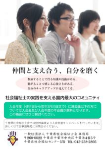 ・エントリー:下記応募フォーム(千葉県社会福祉士会宛て)に記入して下さい。
