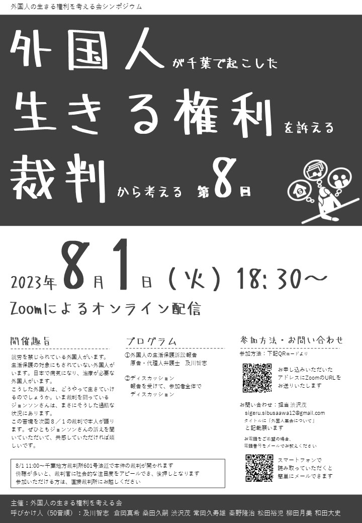 外国人の生きる権利を考える会より、シンポジウムのご案内です。 詳細は下記よりご確認いただき、直接お問い合わせ、お申込みください。
